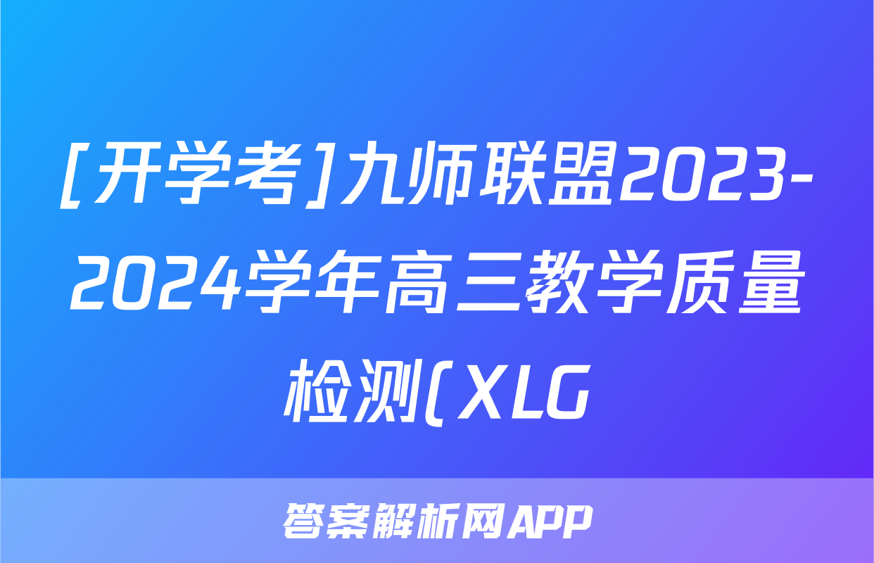 [开学考]九师联盟2023-2024学年高三教学质量检测(XLG)语文,目前2024-2025英语周报圈已经汇总了[开学考]九师联盟2023-2024学年高三教学质量检测(XLG)语文的各科答案和试卷,获取更多{{papers_name}}答案解析,请在关注本站。
