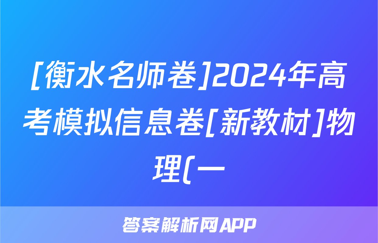[衡水名师卷]2024年高考模拟信息卷[新教材]物理(一)1试题,目前2024-2025英语周报圈已经汇总了[衡水名师卷]2024年高考模拟信息卷[新教材]物理(一)1试题的各科答案和试卷,获取更多{{papers_name}}答案解析,请在关注本站。