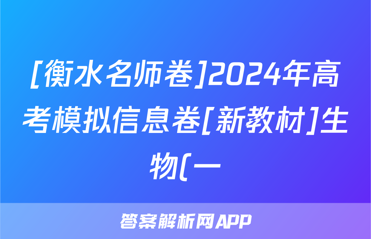[衡水名师卷]2024年高考模拟信息卷[新教材]生物(一)1试题,目前2024-2025英语周报圈已经汇总了[衡水名师卷]2024年高考模拟信息卷[新教材]生物(一)1试题的各科答案和试卷,获取更多{{papers_name}}答案解析,请在关注本站。