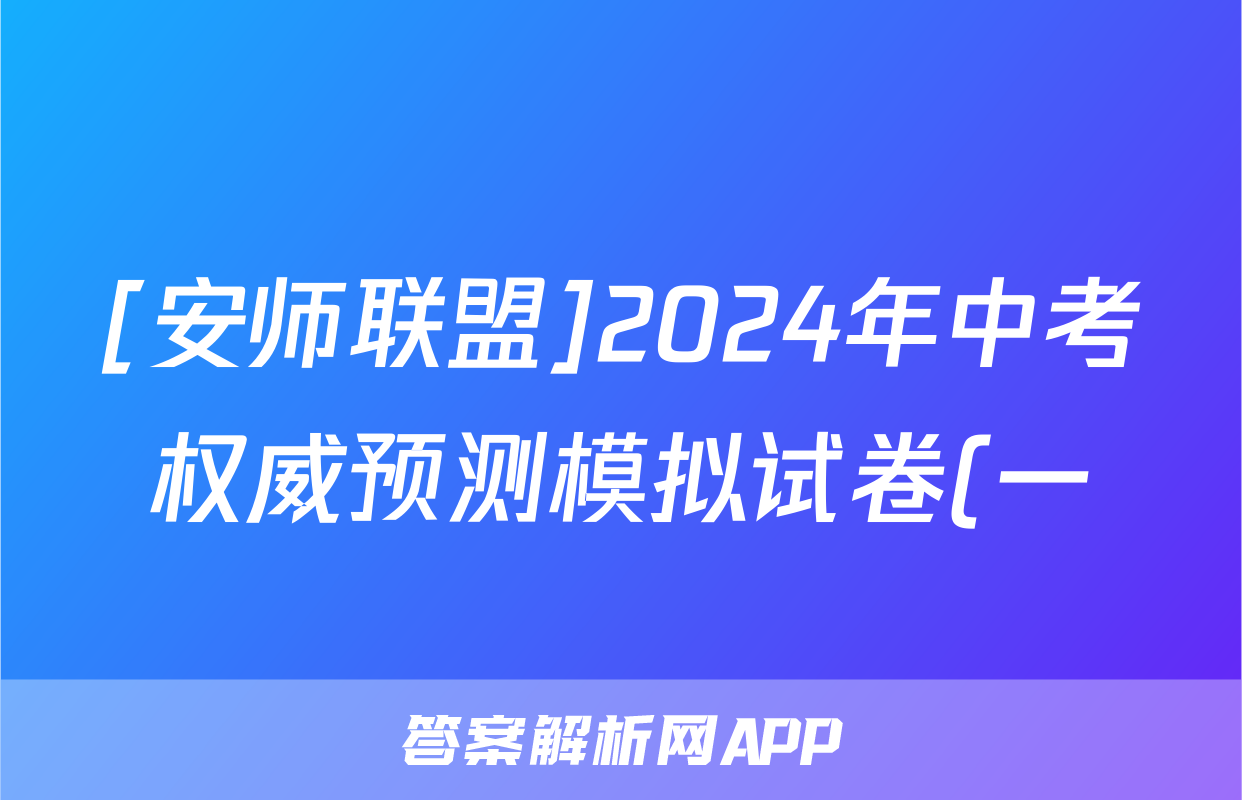 [安师联盟]2024年中考权威预测模拟试卷(一)1英语试题,目前2024-2025英语周报圈已经汇总了[安师联盟]2024年中考权威预测模拟试卷(一)1英语试题的各科答案和试卷,获取更多{{papers_name}}答案解析,请在关注本站。