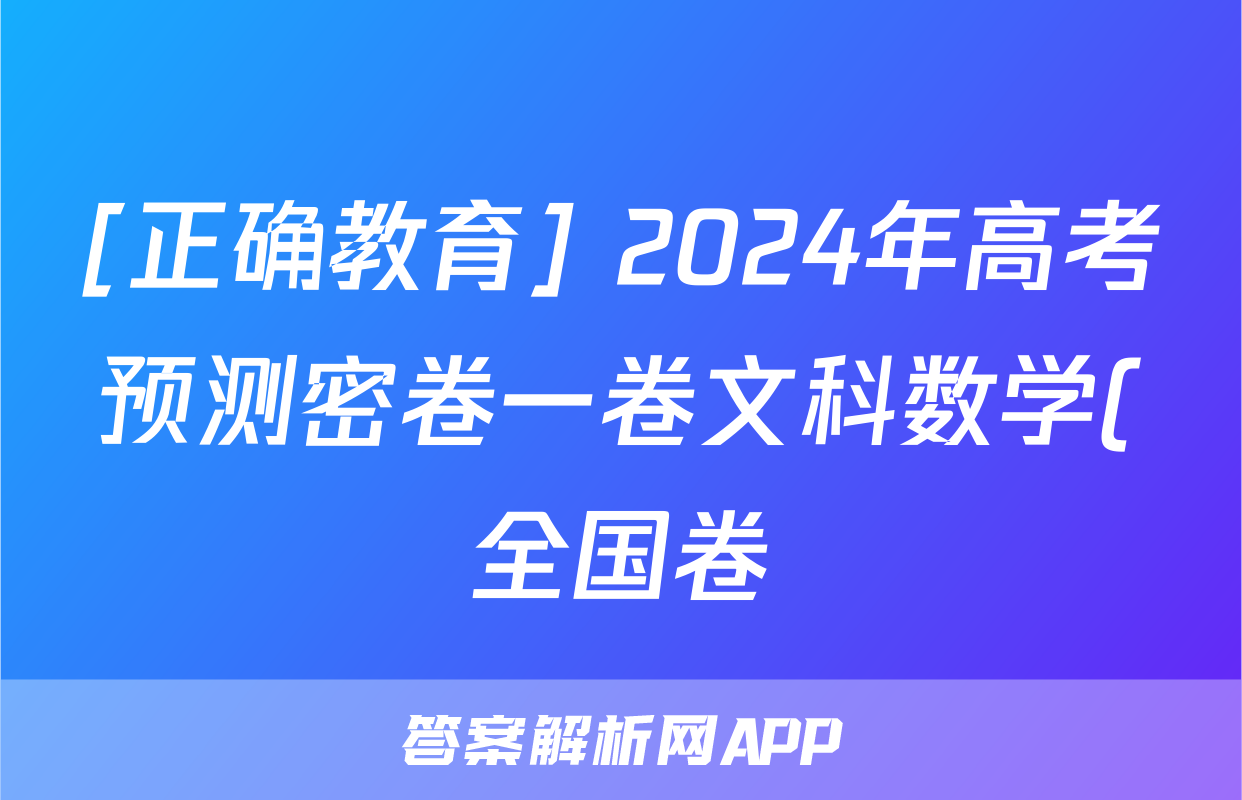 [正确教育] 2024年高考预测密卷一卷文科数学(全国卷)试题,目前2024-2025英语周报圈已经汇总了[正确教育] 2024年高考预测密卷一卷文科数学(全国卷)试题的各科答案和试卷,获取更多{{papers_name}}答案解析,请在关注本站。