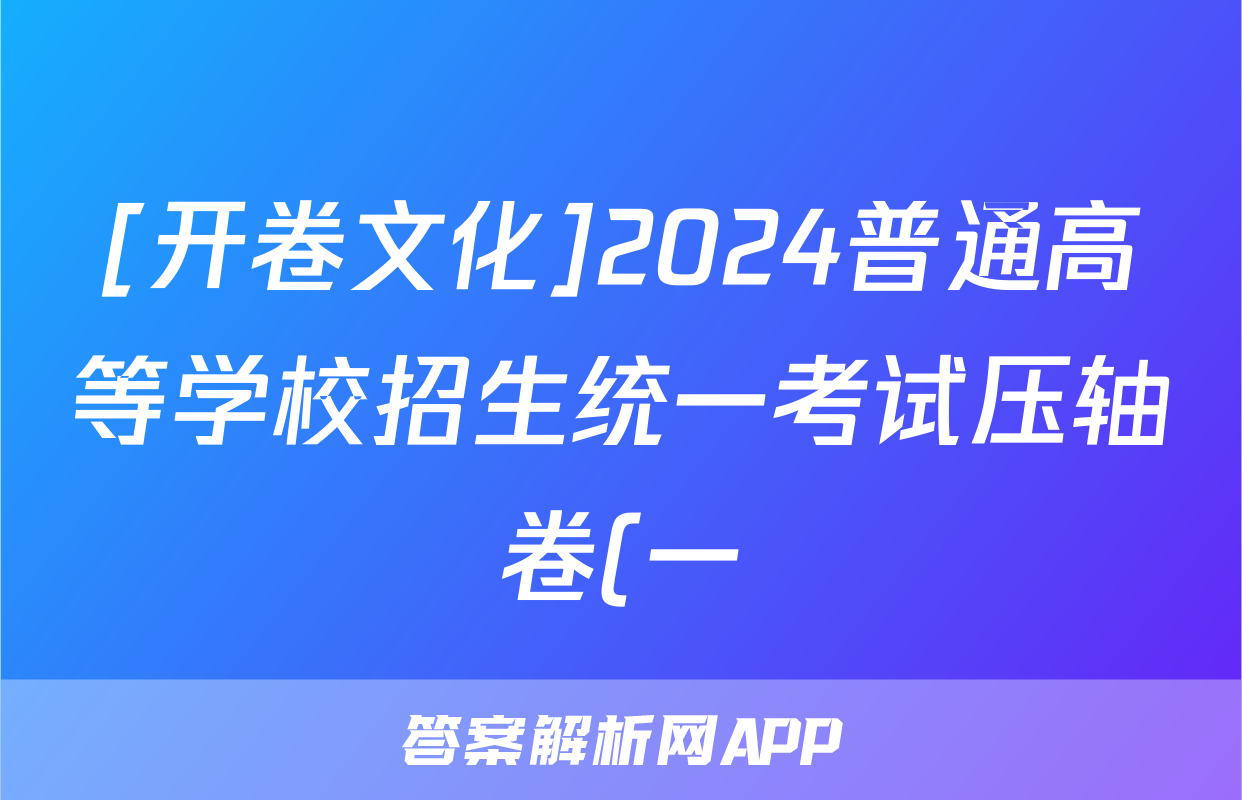 [开卷文化]2024普通高等学校招生统一考试压轴卷(一)1试题(英语),目前2024-2025英语周报圈已经汇总了[开卷文化]2024普通高等学校招生统一考试压轴卷(一)1试题(英语)的各科答案和试卷,获取更多{{papers_name}}答案解析,请在关注本站。