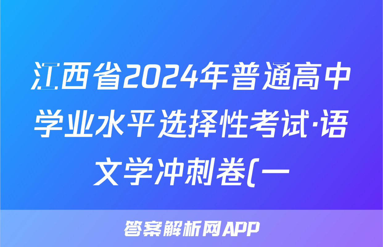 江西省2024年普通高中学业水平选择性考试·语文学冲刺卷(一)1[24·(新高考)CCJ·语文学·JX]答案,目前2024-2025英语周报圈已经汇总了江西省2024年普通高中学业水平选择性考试·语文学冲刺卷(一)1[24·(新高考)CCJ·语文学·JX]答案的各科答案和试卷,获取更多{{papers_name}}答案解析,请在关注本站。