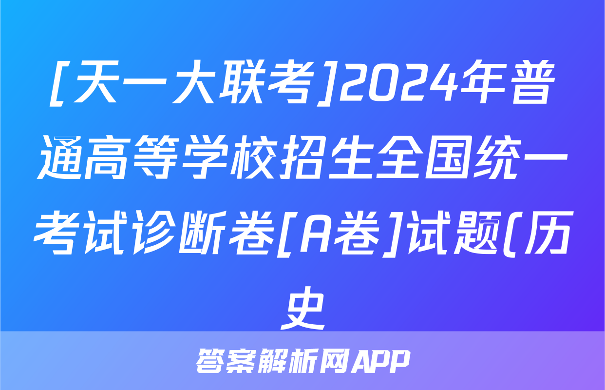 [天一大联考]2024年普通高等学校招生全国统一考试诊断卷[A卷]试题(历史),目前2024-2025英语周报圈已经汇总了[天一大联考]2024年普通高等学校招生全国统一考试诊断卷[A卷]试题(历史)的各科答案和试卷,获取更多{{papers_name}}答案解析,请在关注本站。