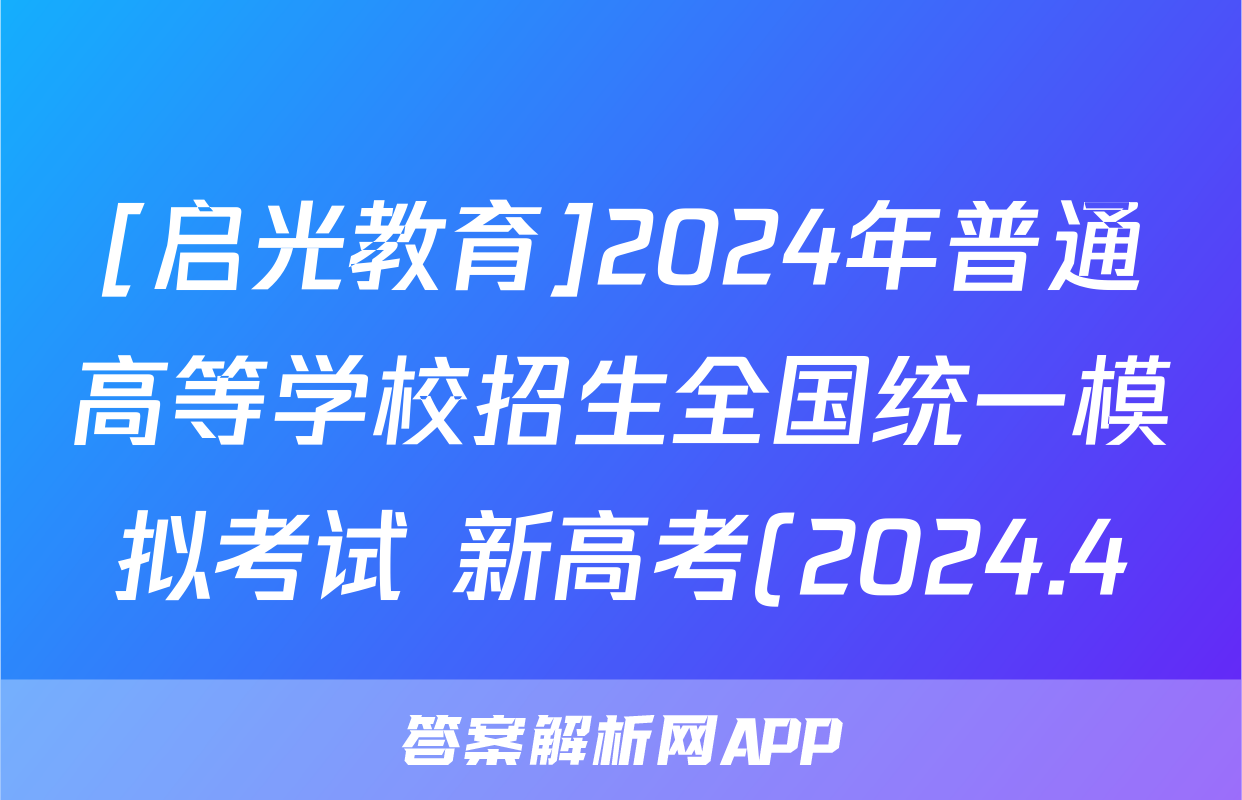 [启光教育]2024年普通高等学校招生全国统一模拟考试 新高考(2024.4)答案(语文),目前2024-2025英语周报圈已经汇总了[启光教育]2024年普通高等学校招生全国统一模拟考试 新高考(2024.4)答案(语文)的各科答案和试卷,获取更多{{papers_name}}答案解析,请在关注本站。