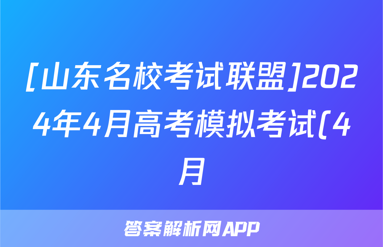 [山东名校考试联盟]2024年4月高考模拟考试(4月)试题(英语),目前2024-2025英语周报圈已经汇总了[山东名校考试联盟]2024年4月高考模拟考试(4月)试题(英语)的各科答案和试卷,获取更多{{papers_name}}答案解析,请在关注本站。