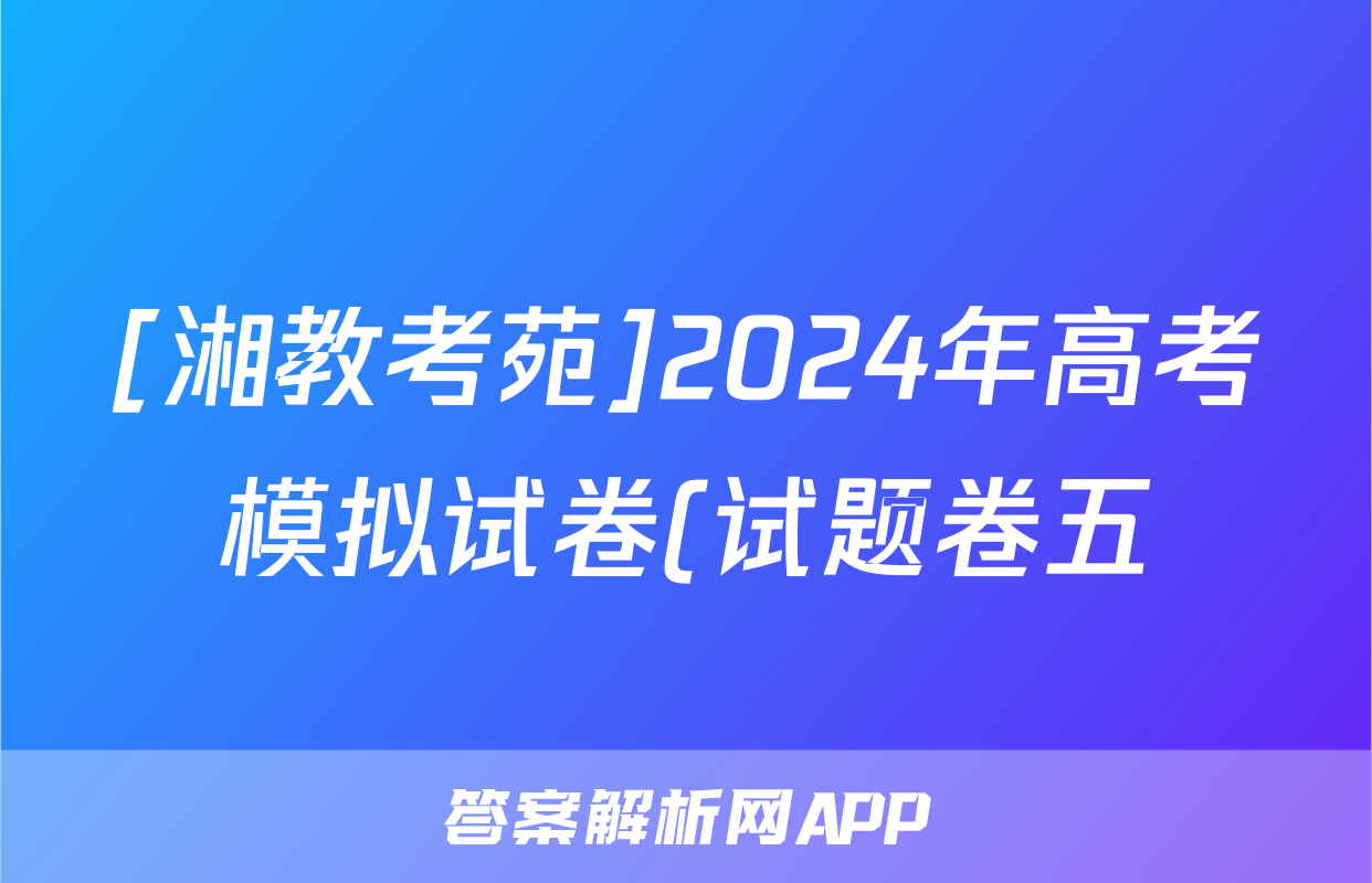 [湘教考苑]2024年高考模拟试卷(试题卷五)答案(政治),目前2024-2025英语周报圈已经汇总了[湘教考苑]2024年高考模拟试卷(试题卷五)答案(政治)的各科答案和试卷,获取更多{{papers_name}}答案解析,请在关注本站。
