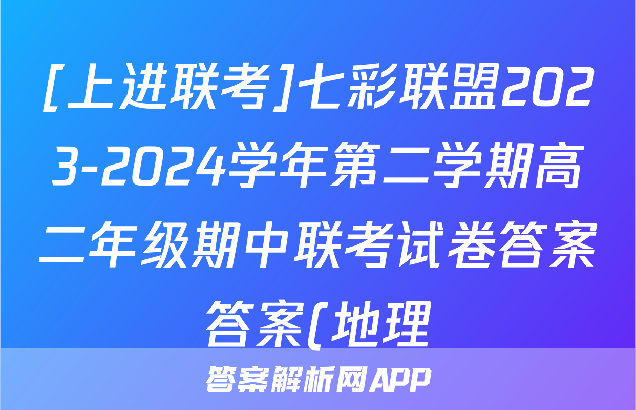 [上进联考]七彩联盟2023-2024学年第二学期高二年级期中联考试卷答案答案(地理),目前2024-2025英语周报圈已经汇总了[上进联考]七彩联盟2023-2024学年第二学期高二年级期中联考试卷答案答案(地理)的各科答案和试卷,获取更多{{papers_name}}答案解析,请在关注本站。