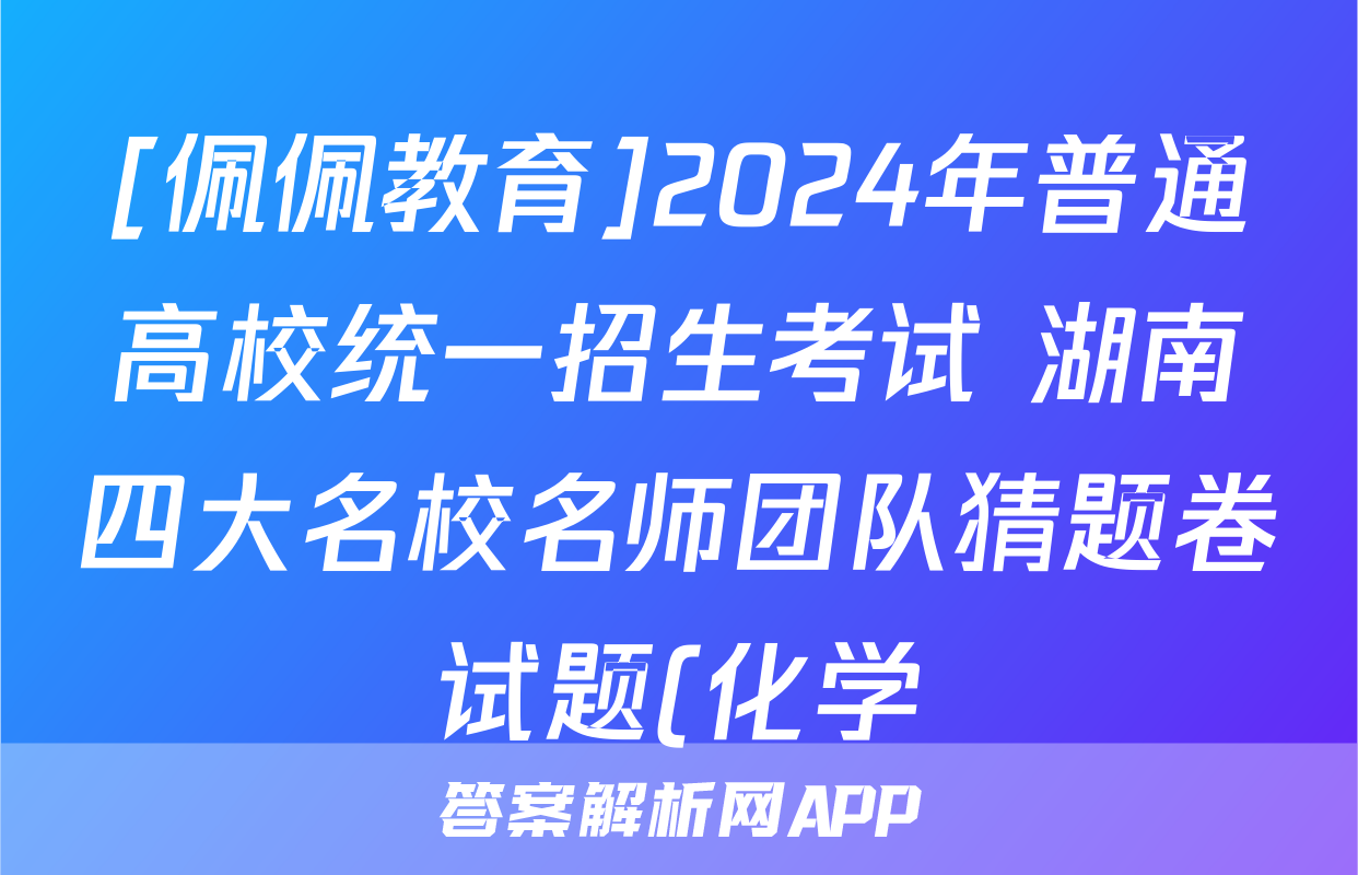 1、[佩佩教育]2024年普通高校统一招生考试 湖南四大名校名师团队猜题卷答案(化学)