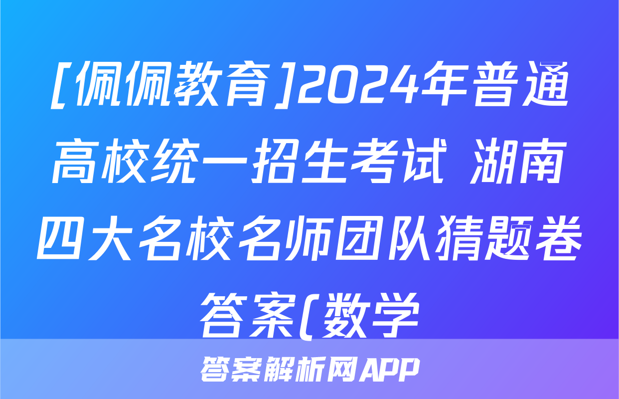 [佩佩教育]2024年普通高校统一招生考试 湖南四大名校名师团队猜题卷答案(数学),目前2024-2025英语周报圈已经汇总了[佩佩教育]2024年普通高校统一招生考试 湖南四大名校名师团队猜题卷答案(数学)的各科答案和试卷,获取更多{{papers_name}}答案解析,请在关注本站。