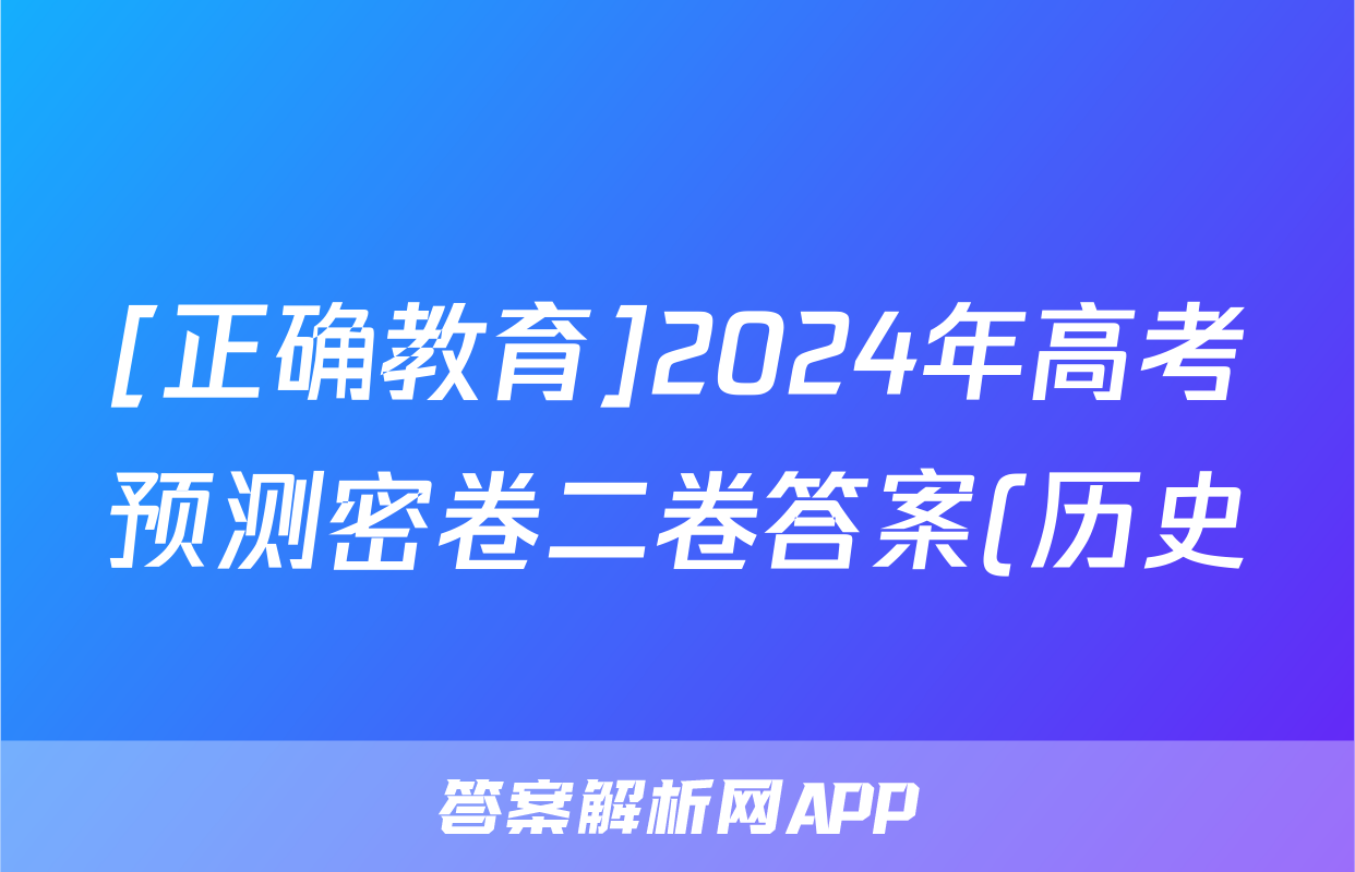 [正确教育]2024年高考预测密卷二卷答案(历史),目前2024-2025英语周报圈已经汇总了[正确教育]2024年高考预测密卷二卷答案(历史)的各科答案和试卷,获取更多{{papers_name}}答案解析,请在关注本站。
