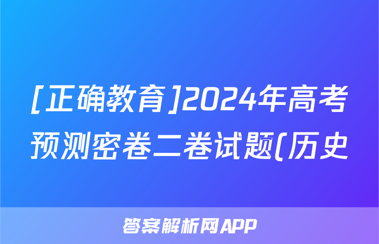 [正确教育]2024年高考预测密卷二卷试题(历史),目前2024-2025英语周报圈已经汇总了[正确教育]2024年高考预测密卷二卷试题(历史)的各科答案和试卷,获取更多{{papers_name}}答案解析,请在关注本站。