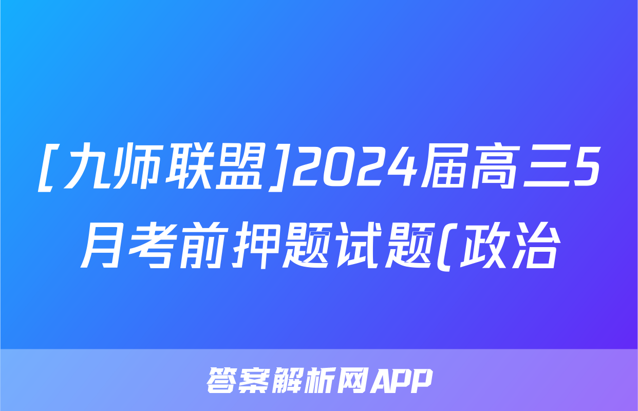 [九师联盟]2024届高三5月考前押题试题(政治),目前2024-2025英语周报圈已经汇总了[九师联盟]2024届高三5月考前押题试题(政治)的各科答案和试卷,获取更多{{papers_name}}答案解析,请在关注本站。