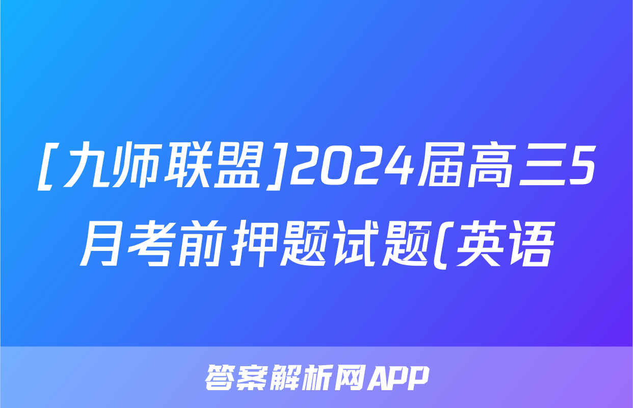 3、[九师联盟]2024届高三5月考前押题答案(英语)