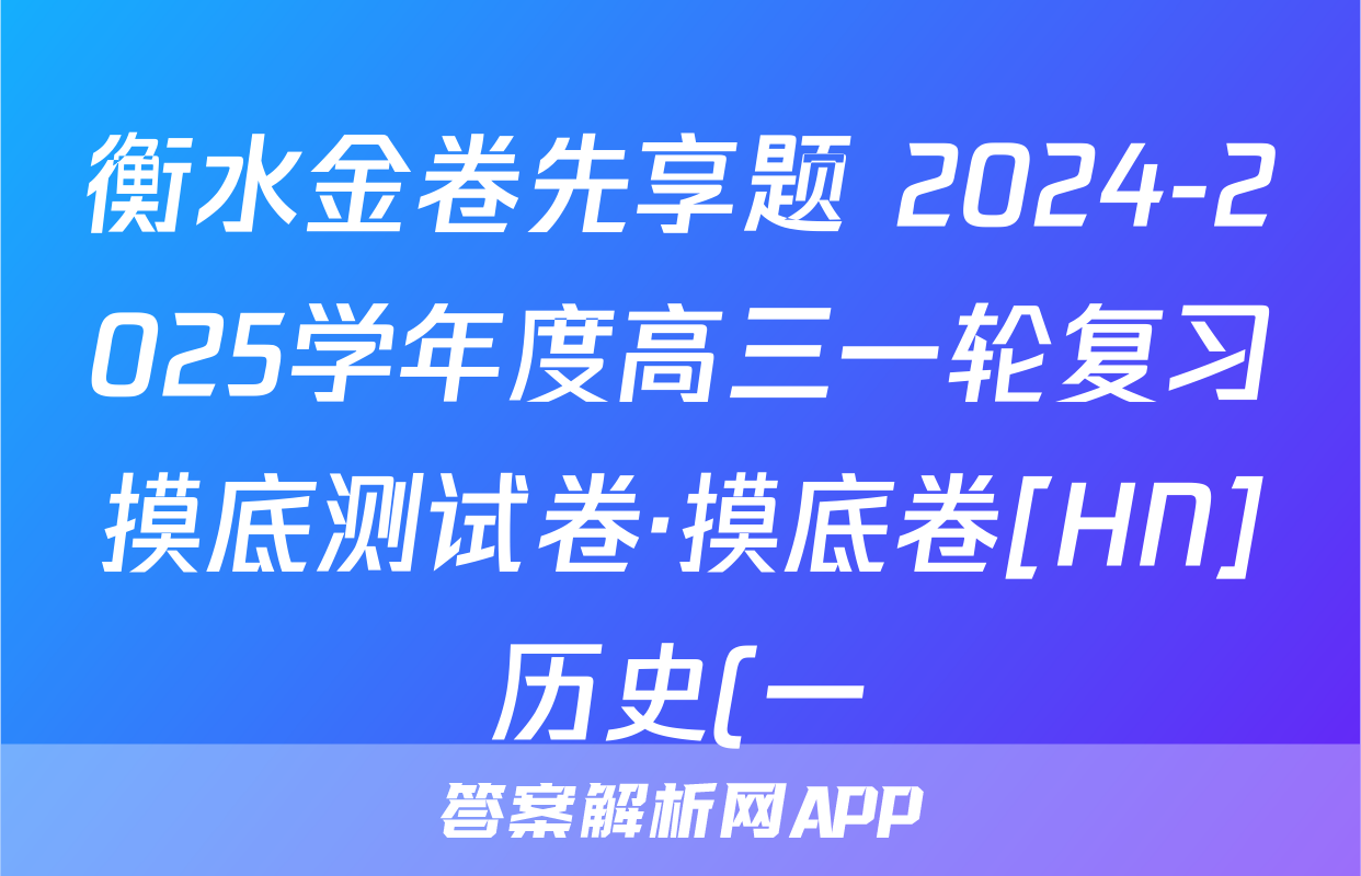 衡水金卷先享题 2024-2025学年度高三一轮复习摸底测试卷·摸底卷[HN]历史(一)1答案,目前2024-2025英语周报圈已经汇总了衡水金卷先享题 2024-2025学年度高三一轮复习摸底测试卷·摸底卷[HN]历史(一)1答案的各科答案和试卷,获取更多{{papers_name}}答案解析,请在关注本站。