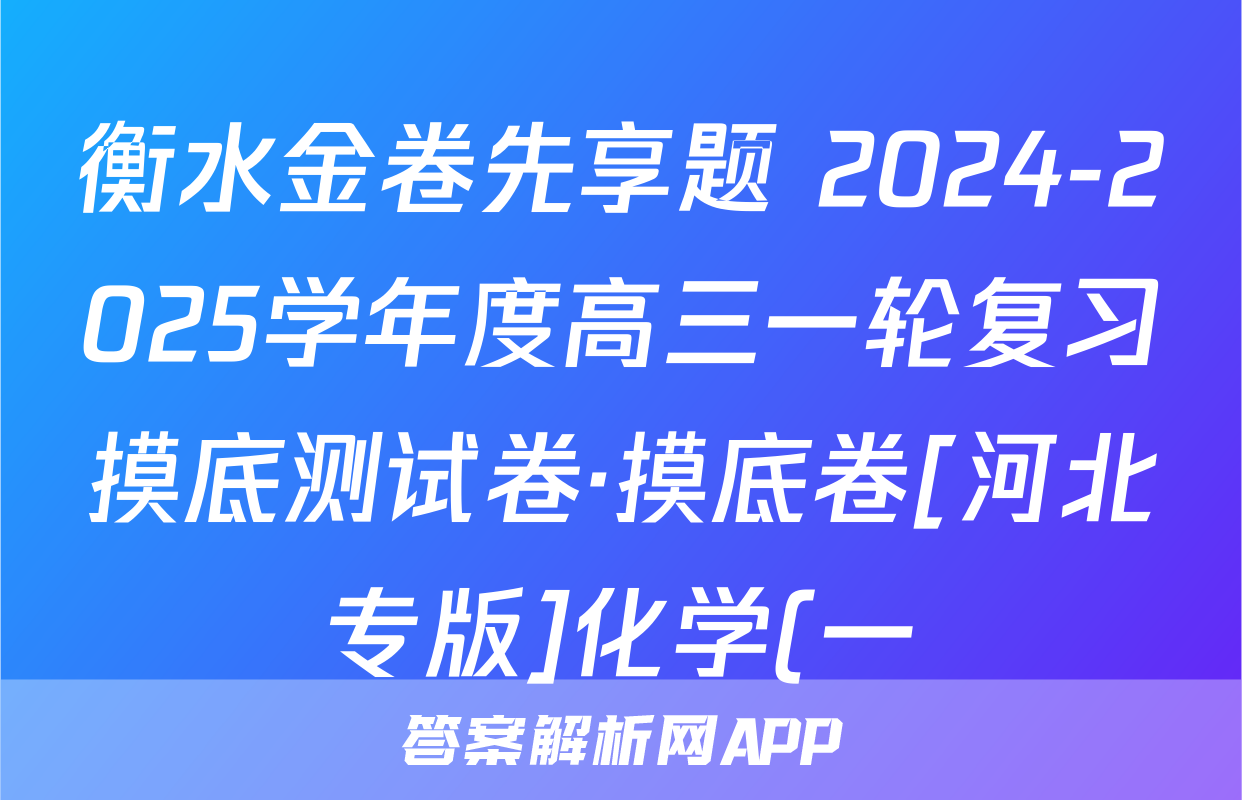 衡水金卷先享题 2024-2025学年度高三一轮复习摸底测试卷·摸底卷[河北专版]化学(一)1试题,目前2024-2025英语周报圈已经汇总了衡水金卷先享题 2024-2025学年度高三一轮复习摸底测试卷·摸底卷[河北专版]化学(一)1试题的各科答案和试卷,获取更多{{papers_name}}答案解析,请在关注本站。