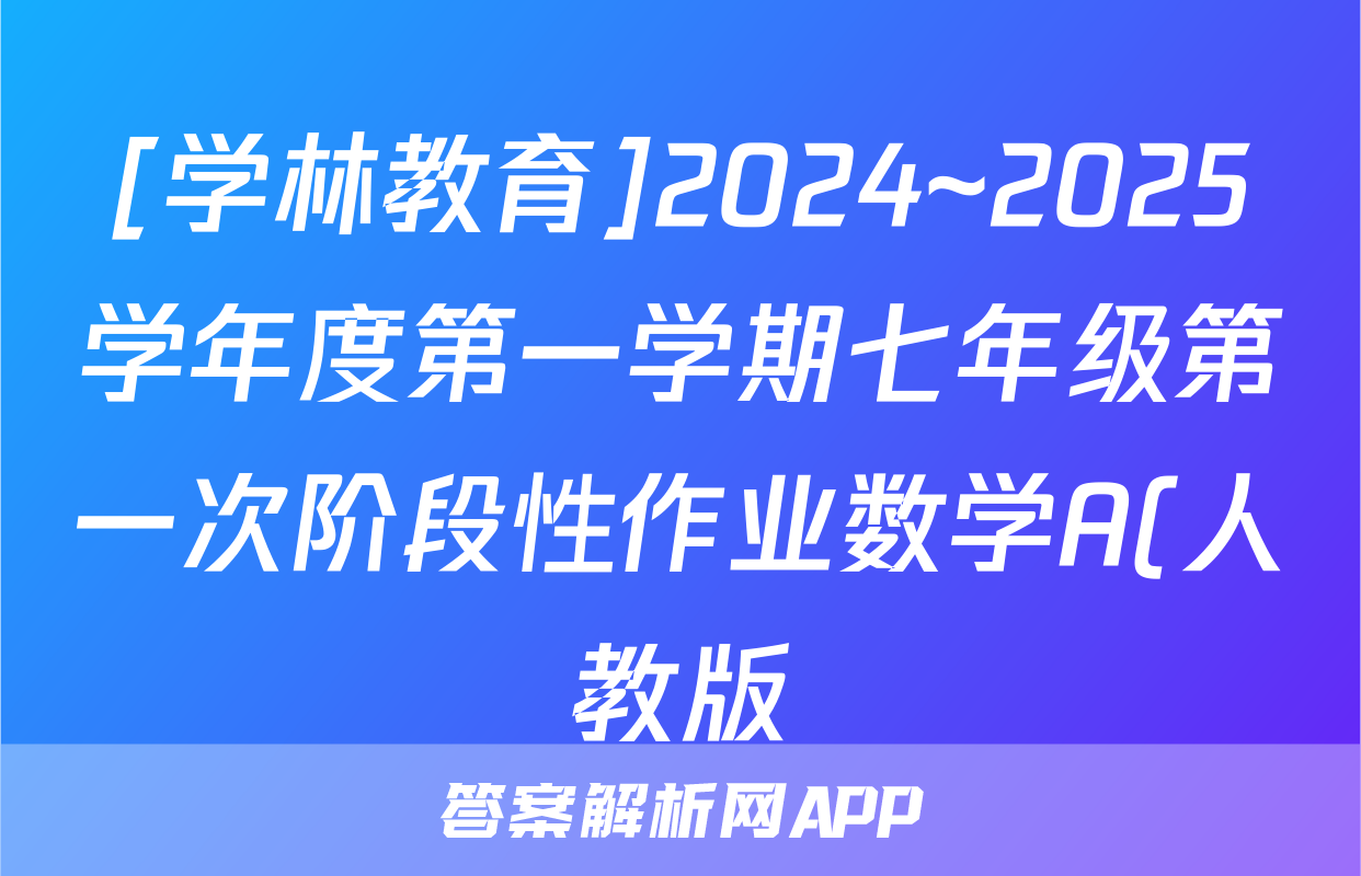 [学林教育]2024~2025学年度第一学期七年级第一次阶段性作业数学A(人教版)试题,目前2024-2025英语周报圈已经汇总了[学林教育]2024~2025学年度第一学期七年级第一次阶段性作业数学A(人教版)试题的各科答案和试卷,获取更多{{papers_name}}答案解析,请在关注本站。