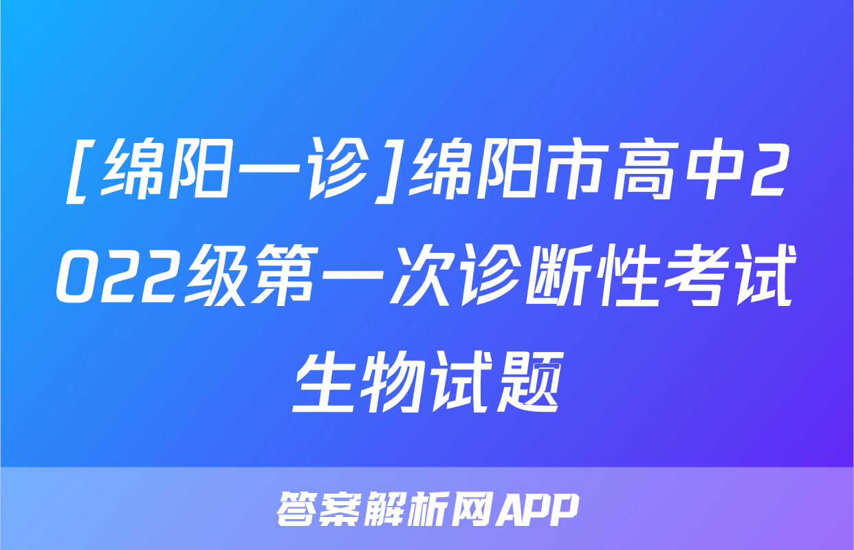 [绵阳一诊]绵阳市高中2022级第一次诊断性考试生物试题,目前2024-2025英语周报圈已经汇总了[绵阳一诊]绵阳市高中2022级第一次诊断性考试生物试题的各科答案和试卷,获取更多{{papers_name}}答案解析,请在关注本站。